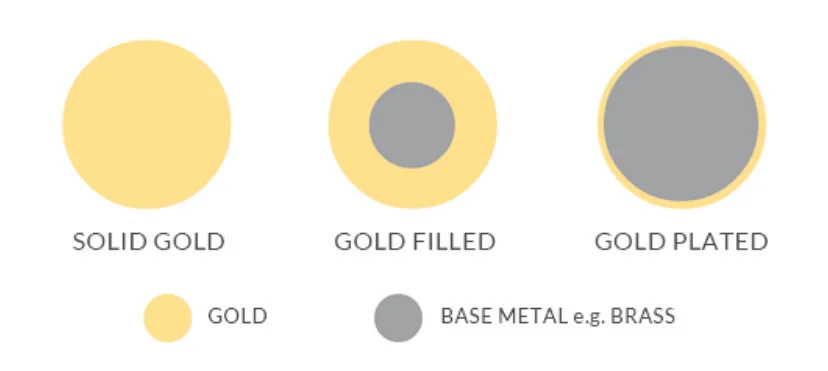- Gold filled 14 karaat: Gold filled betekent dat een goudlaag door hitte en druk mechanisch wordt verbonden met een basismetaal (zoals messing), waardoor een dikkere, duurzame laag ontstaat die veel langer meegaat dan gold plated. Het ziet eruit en voelt als massief goud, maar is betaalbaarder.