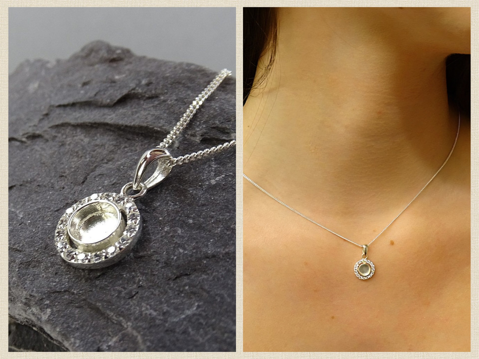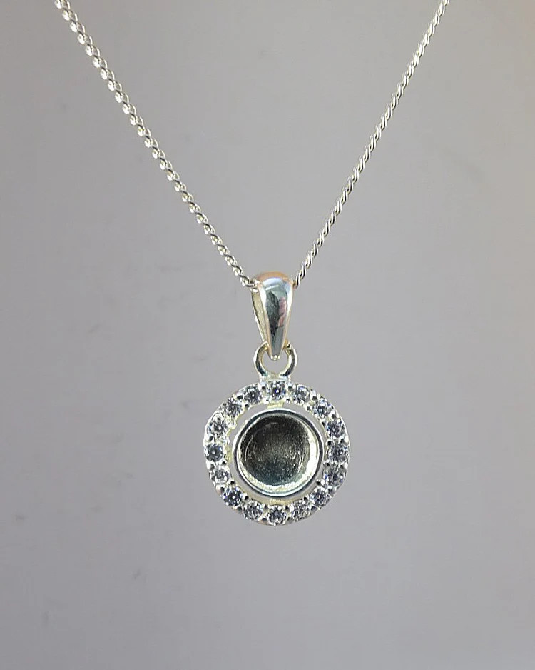 Geschikt voor as, haarlok en moedermelk. Hanger met ronde bezel 6mm om te vullen, totale diameter incl. zirkonia ring is 11mm.